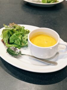 ランチはパン、スープ、サラダ、ドリンク付き
